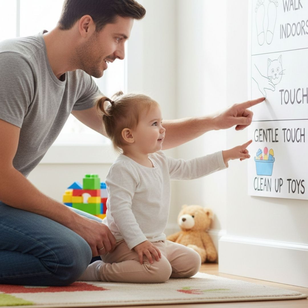 Toddlers flourish when they understand expectations. Keep rules few, direct, and easy to follow. Instead of saying "Be good," try "We use walking feet inside" or "We are gentle with our friends." Reviewing these rules consistently—especially before transitions or new activities—provides the framework your child needs to make good choices. Visual aids can also be very helpful for this age group.